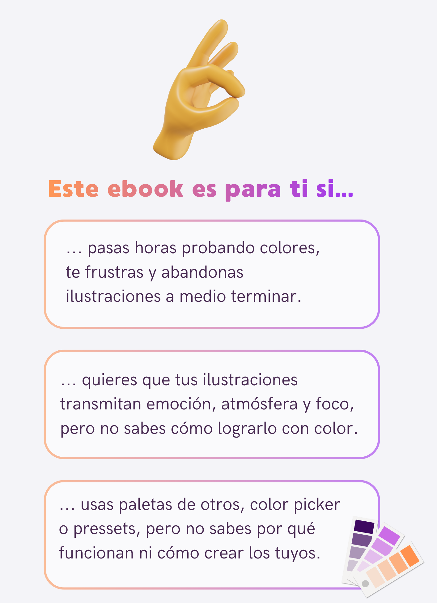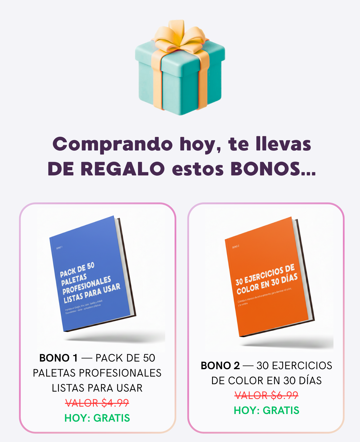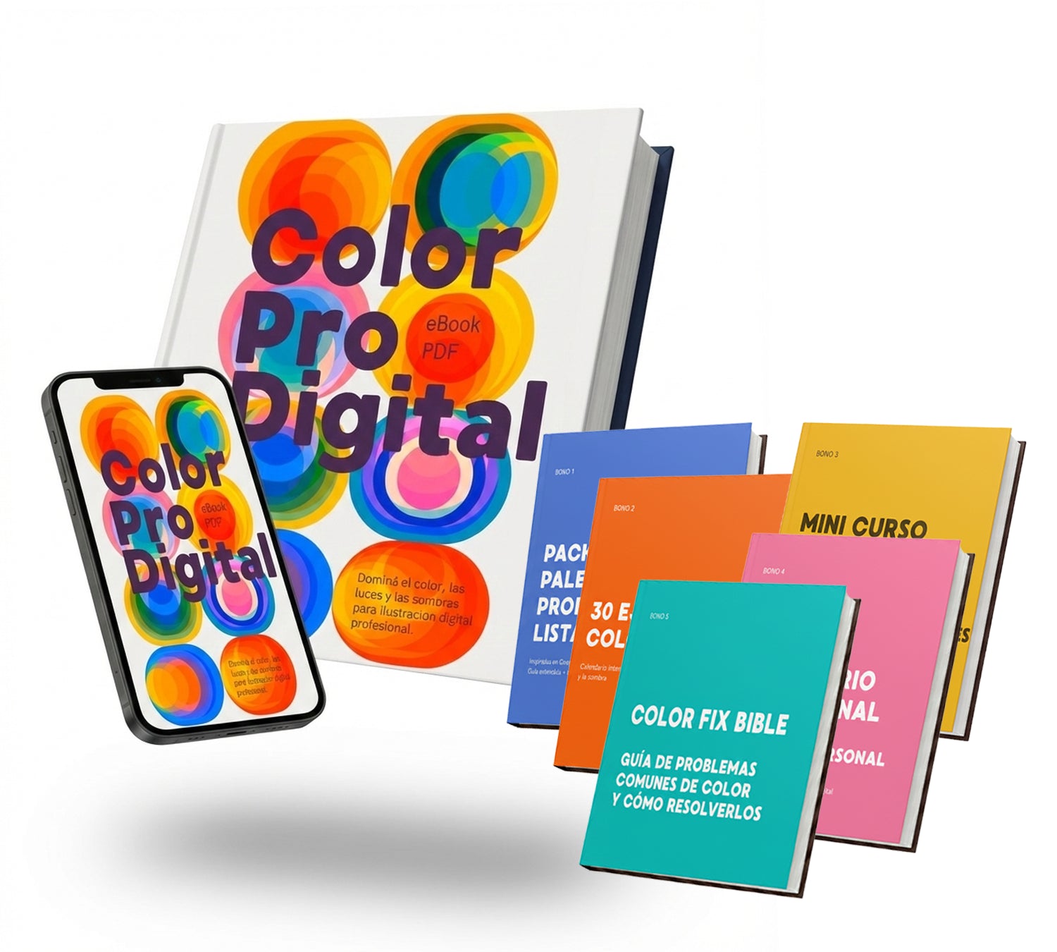 “Ya sabía teoría del color, pero me costaba aplicarla. Este ebook me dio un paso a paso claro para decidir paletas a conciencia. Entender que las luces y sombras llevan color lo cambio todo!”