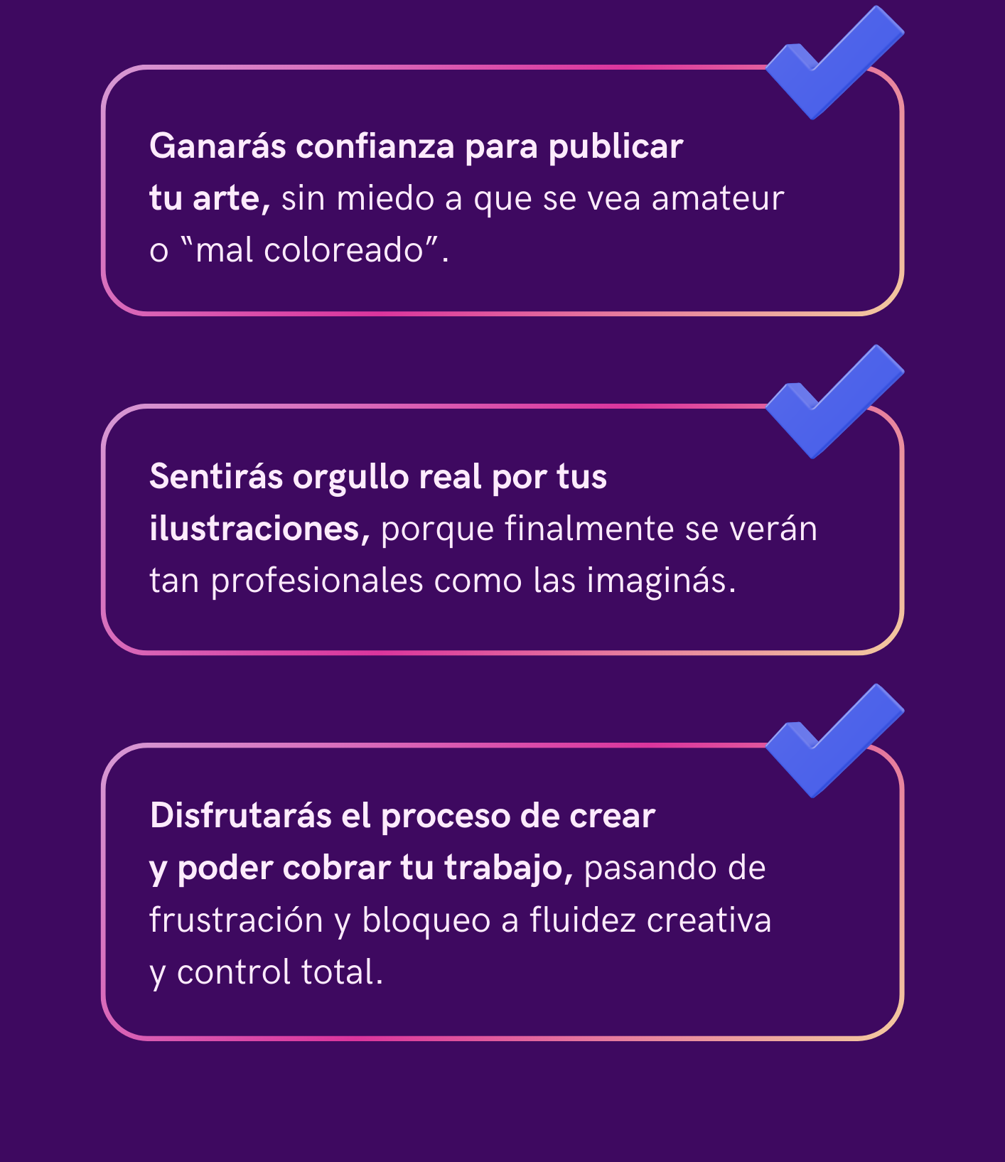 “Antes me pasaba horas probando o cambiando los colores. Ahora elijo una paleta al toque pensando primero es qué quiero lograr en mi ilustracionn. Todo tiene sentido.”